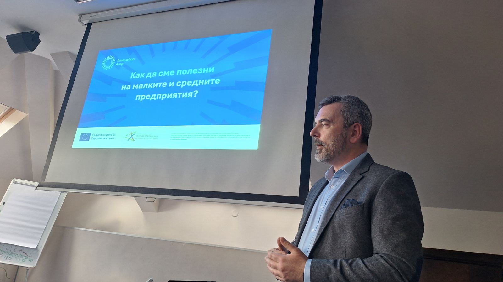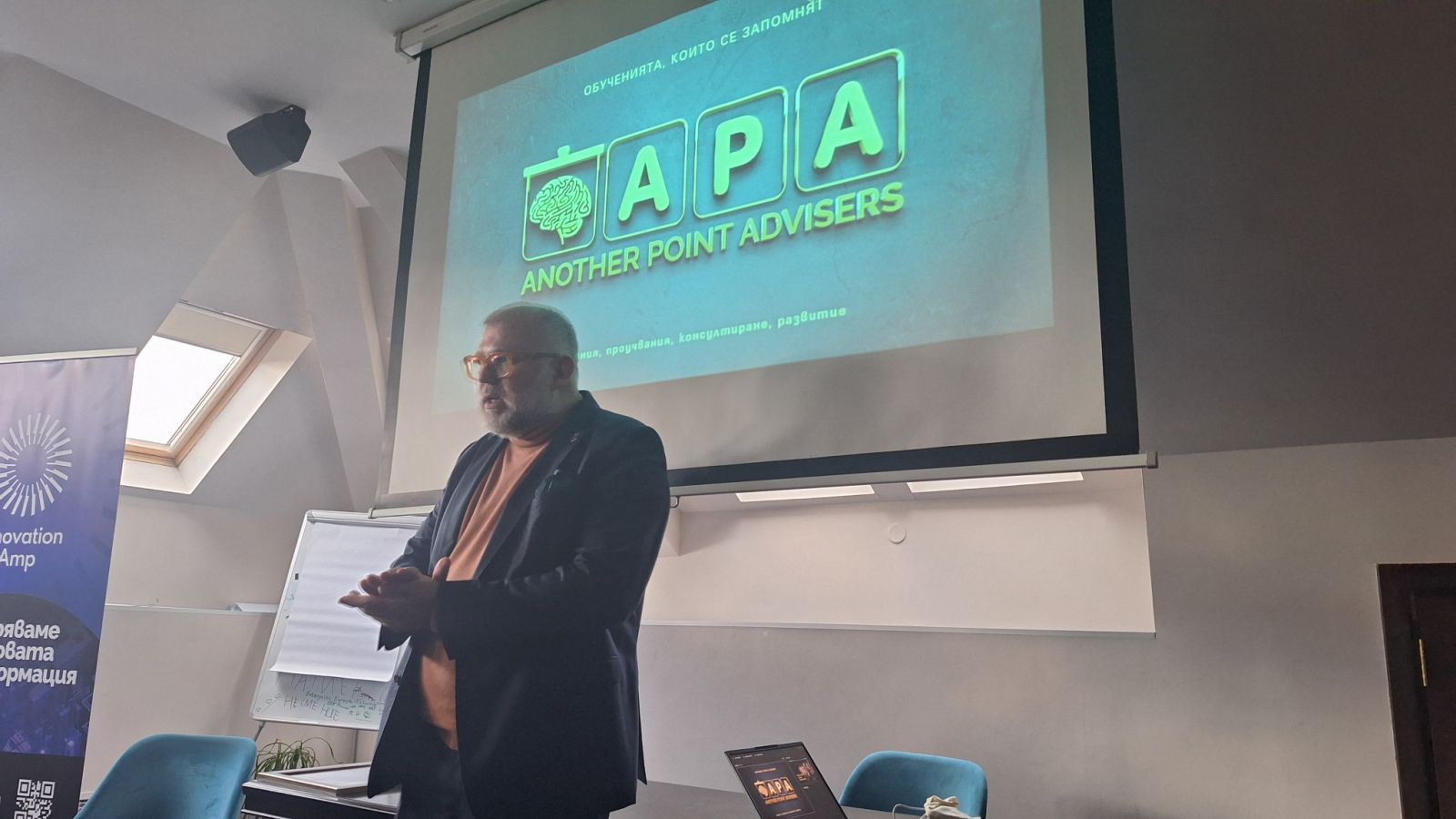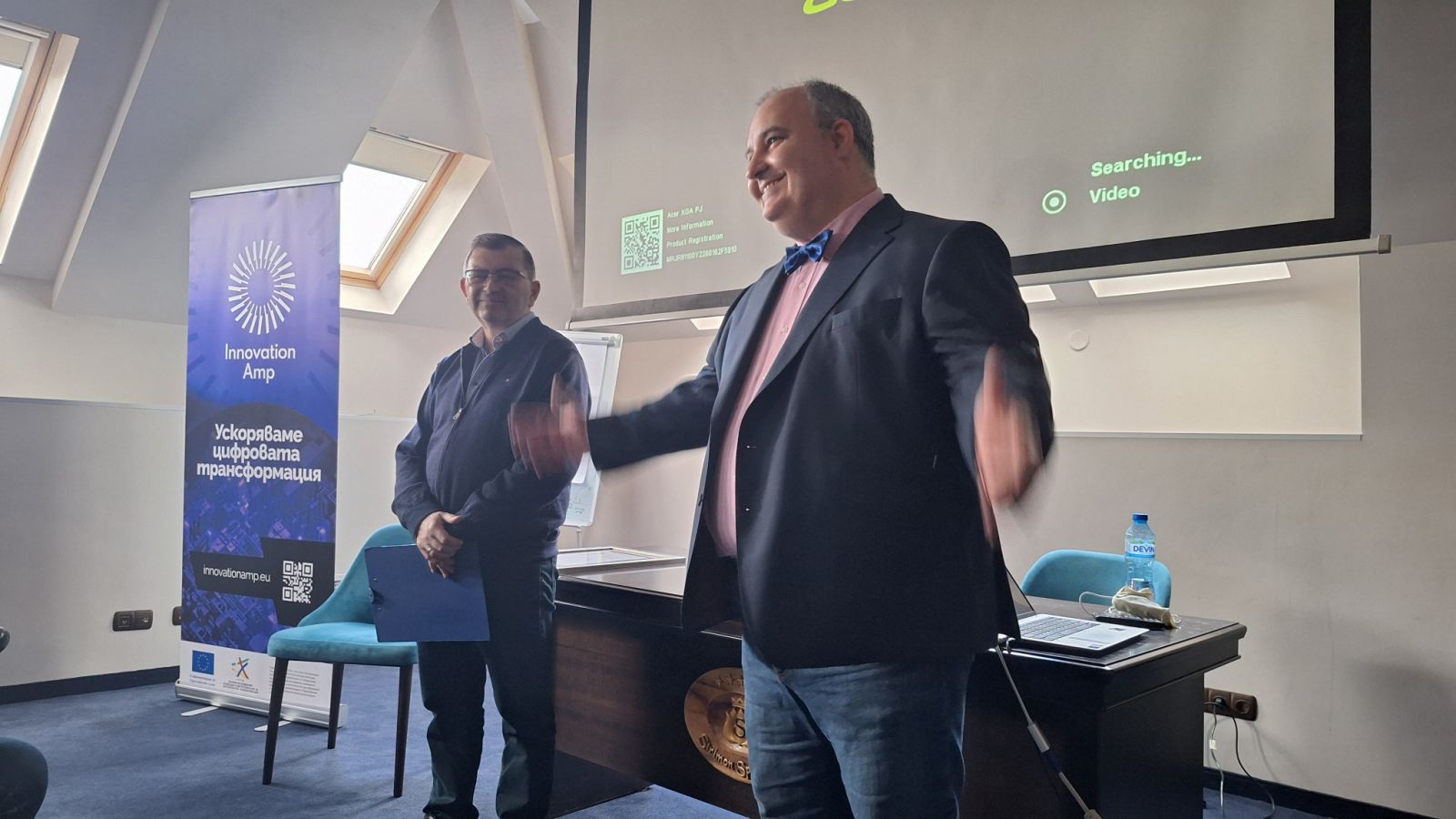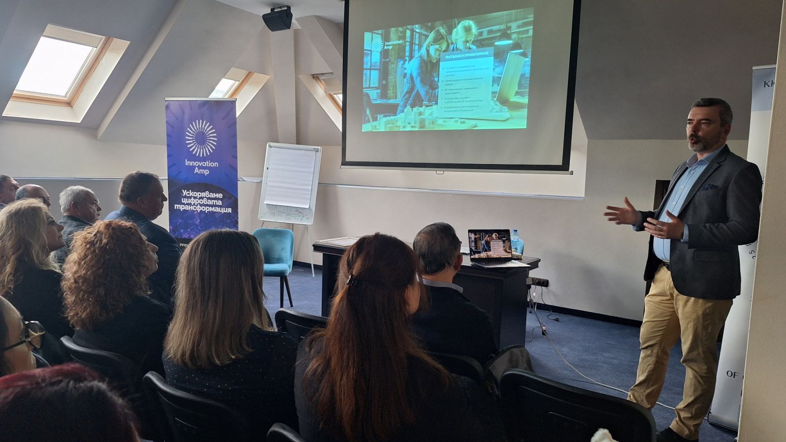 В същия контекст – между опита на поколенията и предизвикателствата на бъдещето беше представен кратък поглед към една от най-динамично развиващите се теми на съвременния бизнес: дигиталната трансформация и изкуствения интелект. По темата „Ускоряване на цифровата трансформация и внедряване на изкуствен интелект в работните процеси“ говори Герасим Славов, който представи възможностите, които Innovation Amp и Стратегическият център за изкуствен интелект предоставят в подкрепа на бизнеса.
