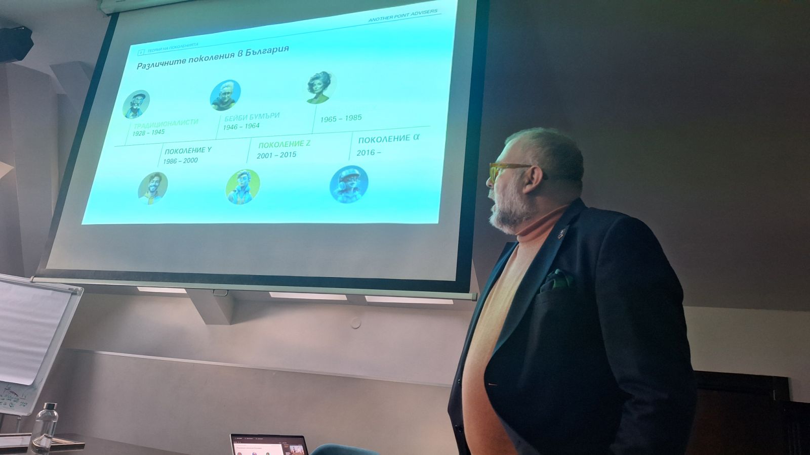 По време на изложението си той представи характеристиките на различните поколения и даде практически насоки за по-ефективна комуникация и изграждане на разбирателство както в професионална, така и в лична среда.