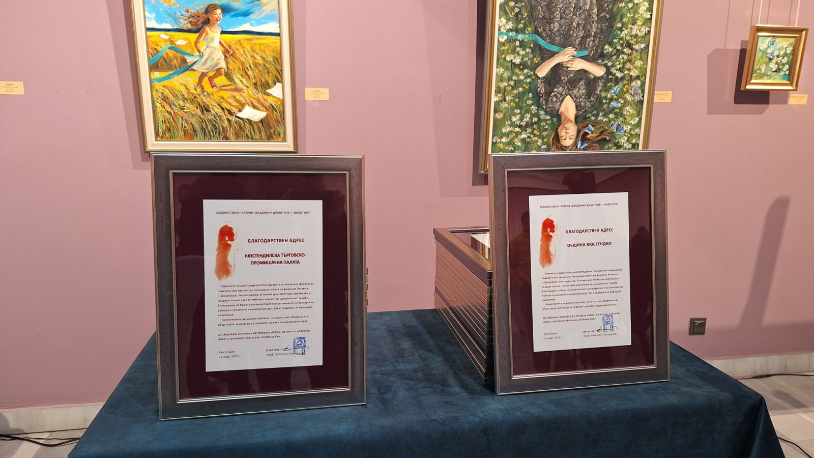 Директорът на галерията проф. Валентин Господинов изрази специална благодарност към председателя на КТПП Ваньо Костадинов и кмета на Община Кюстендил инж. Огнян Атанасов за оказаното съдействие.